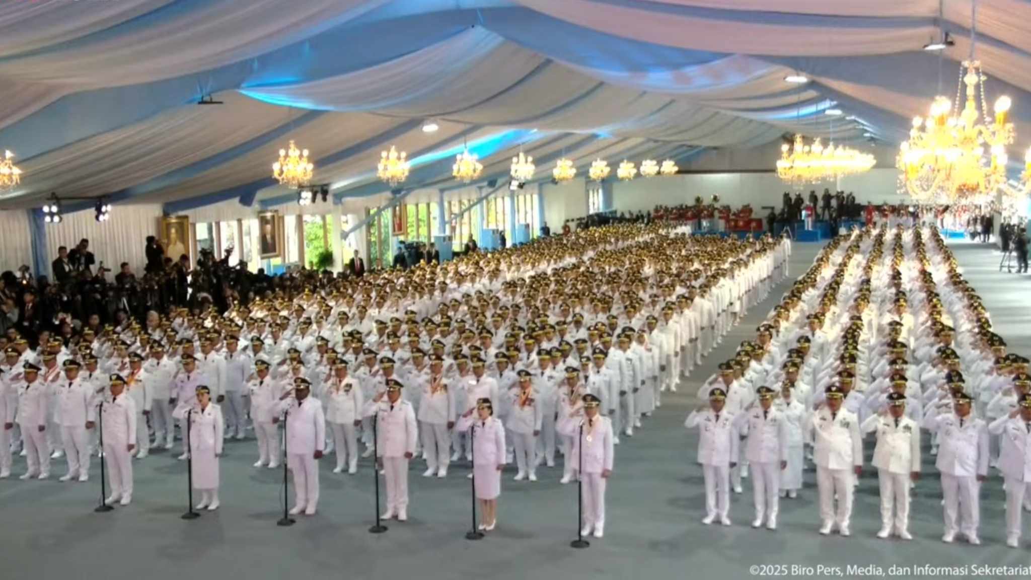 Dengan mengenakan pakaian dinas upacara lengkap berwarna putih, para calon kepala daerah kemudian memasuki tenda utama tempat pelantikan berlangsung, yang berlokasi di Lapangan Tengah Istana Kepresidenan. Tepat pukul 10.00 WIB, Presiden Prabowo tiba di lokasi acara, menandai dimulainya prosesi pelantikan.
